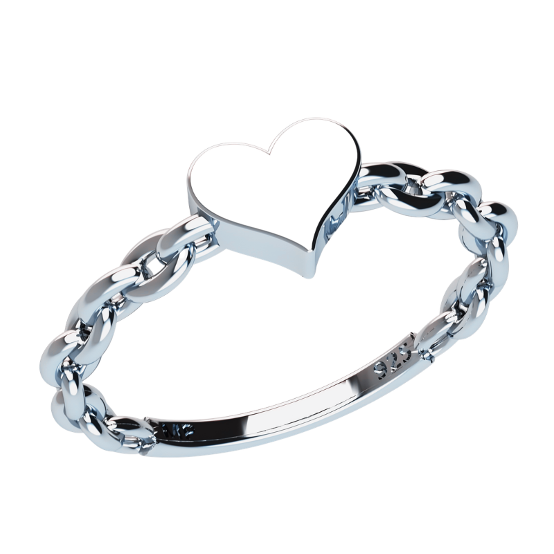 Com uma estrutura que mistura aro tradicional com elos de corrente, esse anel traz um toque contemporâneo sem perder a delicadeza. O coração central simboliza amor, carinho e conexão.