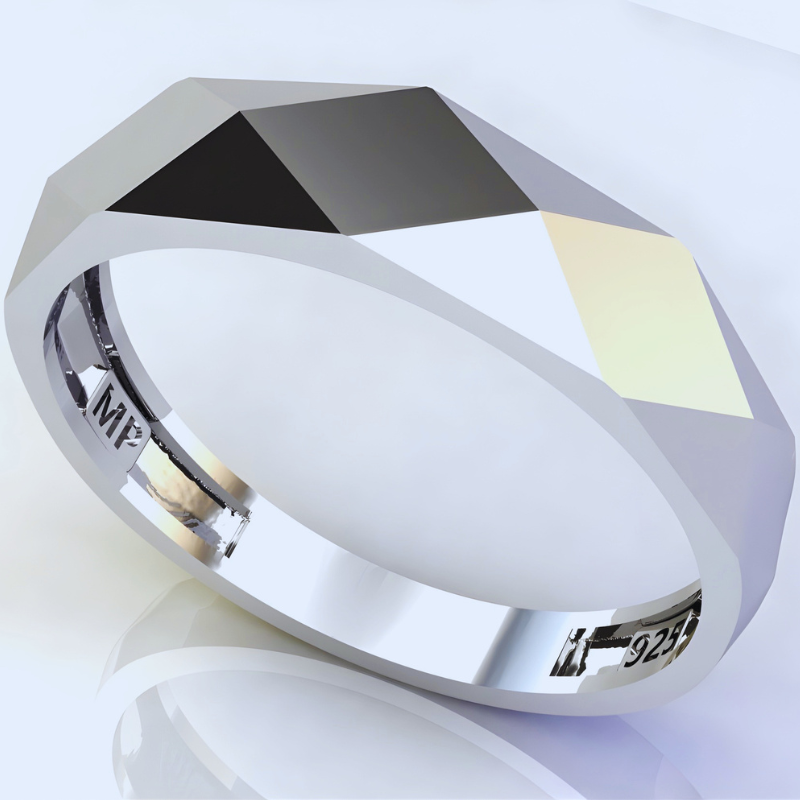 Anel Facetado em Prata 925 Design Geométrico