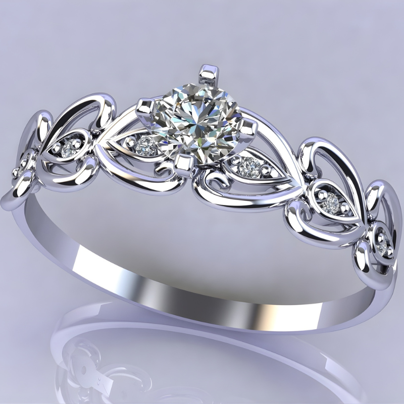 Os detalhes laterais com pequenas zircônias e formas ornamentais criam um efeito visual elegante, remetendo ao estilo clássico com inspiração vintage.