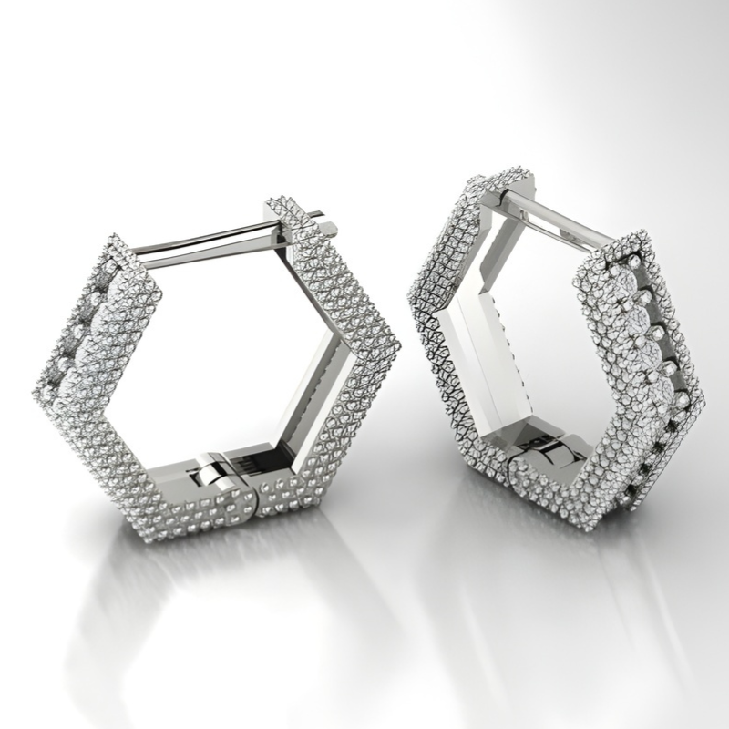 Com estrutura em formato hexagonal e cravação completa em zircônias, o brinco proporciona um brilho intenso e um acabamento refinado, elevando qualquer look.