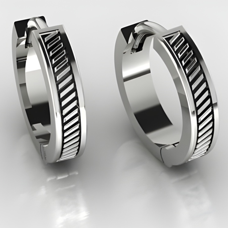 Com acabamento texturizado na parte externa, o brinco cria um efeito visual sofisticado e masculino, perfeito para quem gosta de acessórios com personalidade.