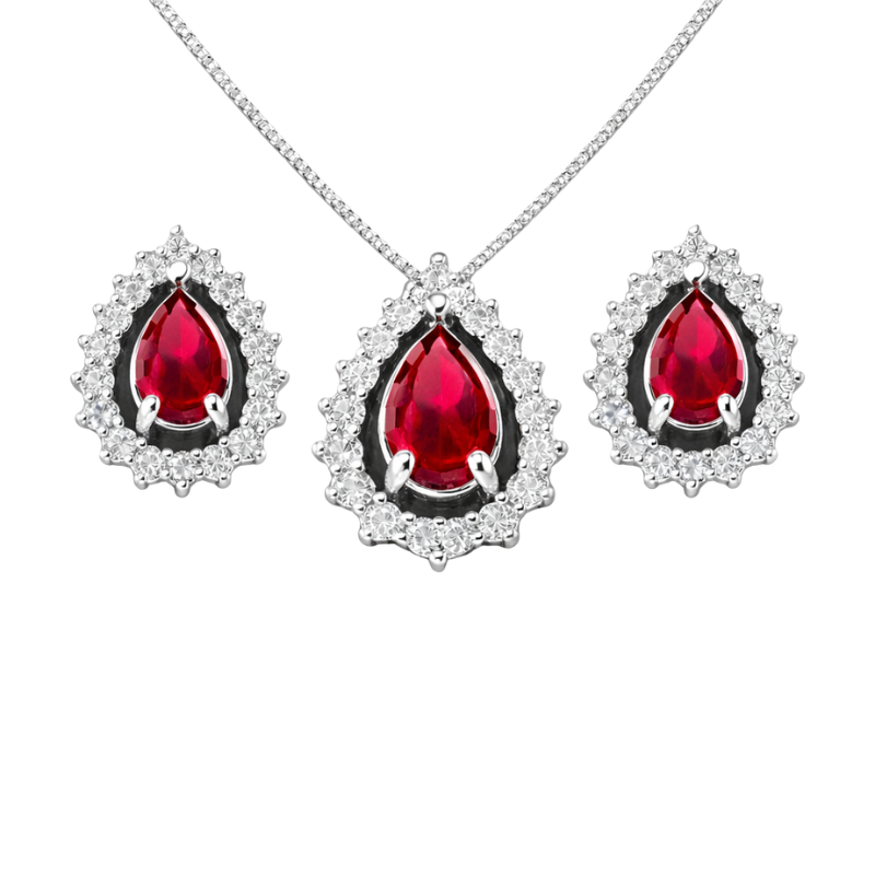 O conjunto gota em prata 925 com zircônia vermelha e brancas é a escolha ideal para quem busca um visual elegante, delicado e marcante. Composto por colar e brincos, ele valoriza qualquer produção com brilho e sofisticação.