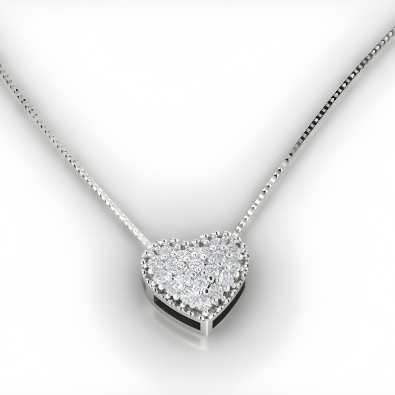 O pingente coração em prata 925 com zircônias cravejadas é uma joia sofisticada que combina romantismo com brilho intenso. Ideal para quem busca um acessório marcante e elegante.