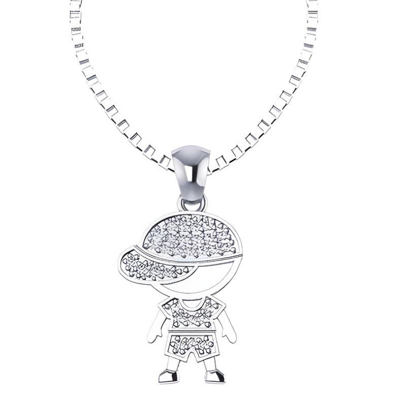 Com formato de menino e detalhes cravejados, o pingente combina brilho e emoção, tornando-se uma peça única e cheia de valor sentimental.