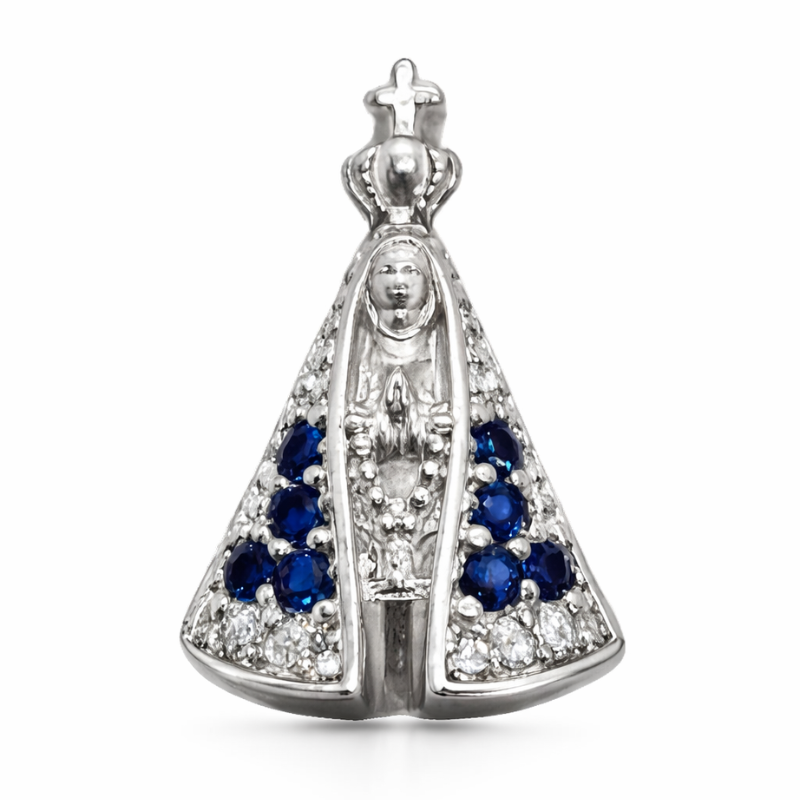 O pingente Nossa Senhora Aparecida em prata 925 com zircônias é uma peça que representa devoção, proteção e espiritualidade, perfeita para quem deseja carregar sua fé com elegância.